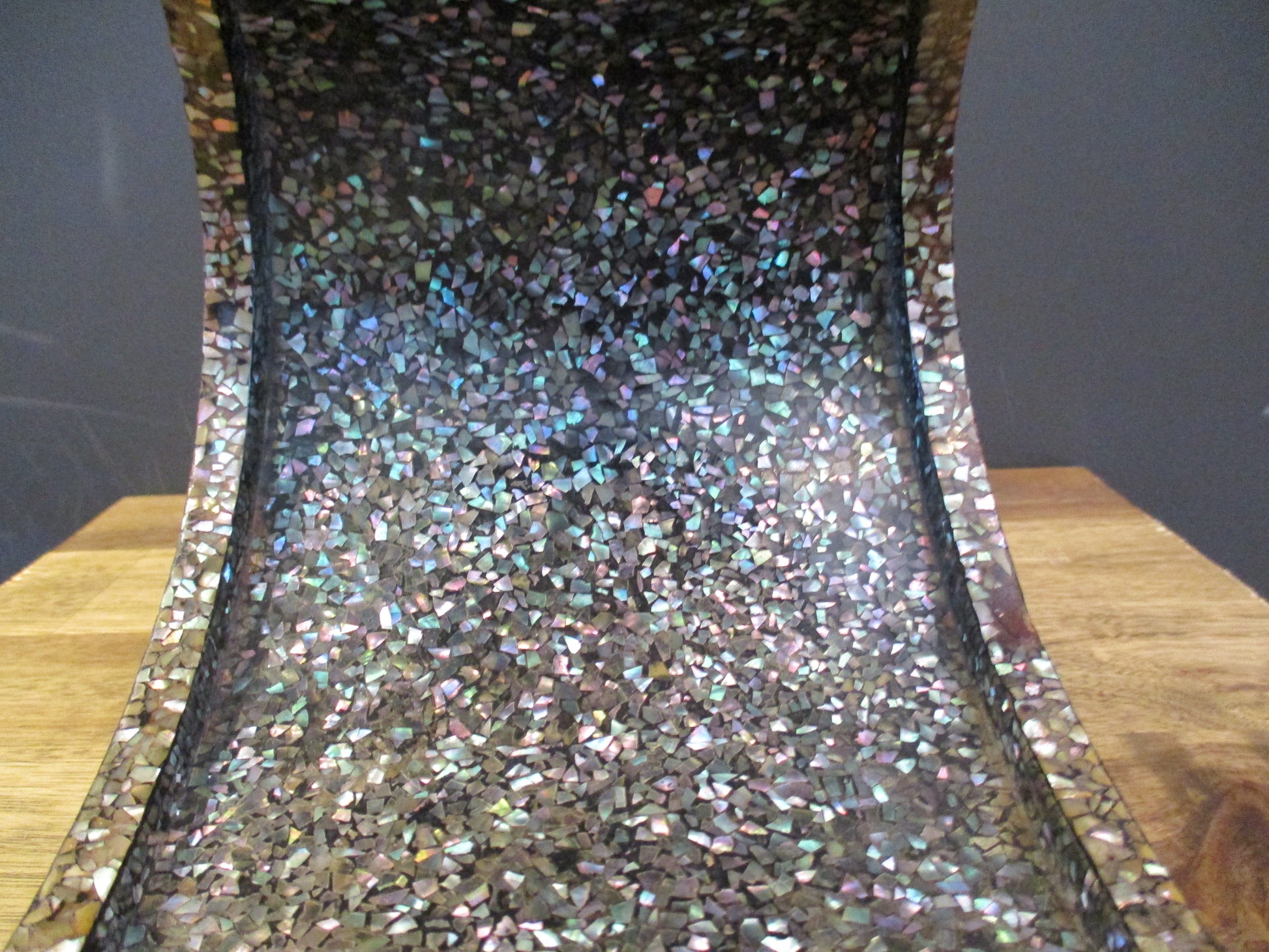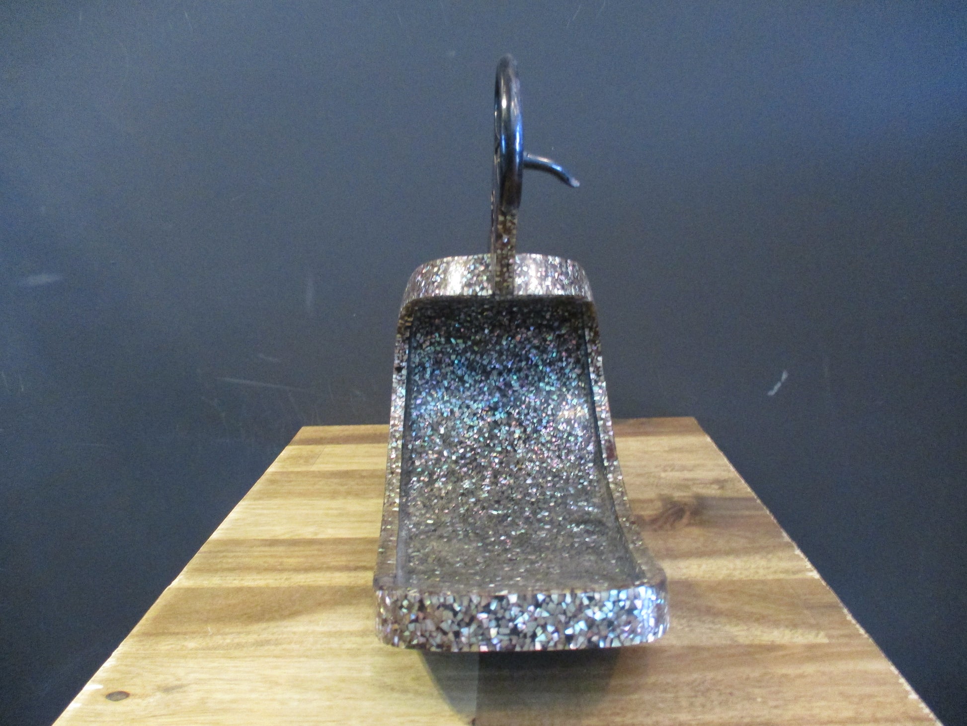 Iron base with Black lacquer and mother of pearl decorations including family Mon (crest) from Edo Period (1603 - 1868).