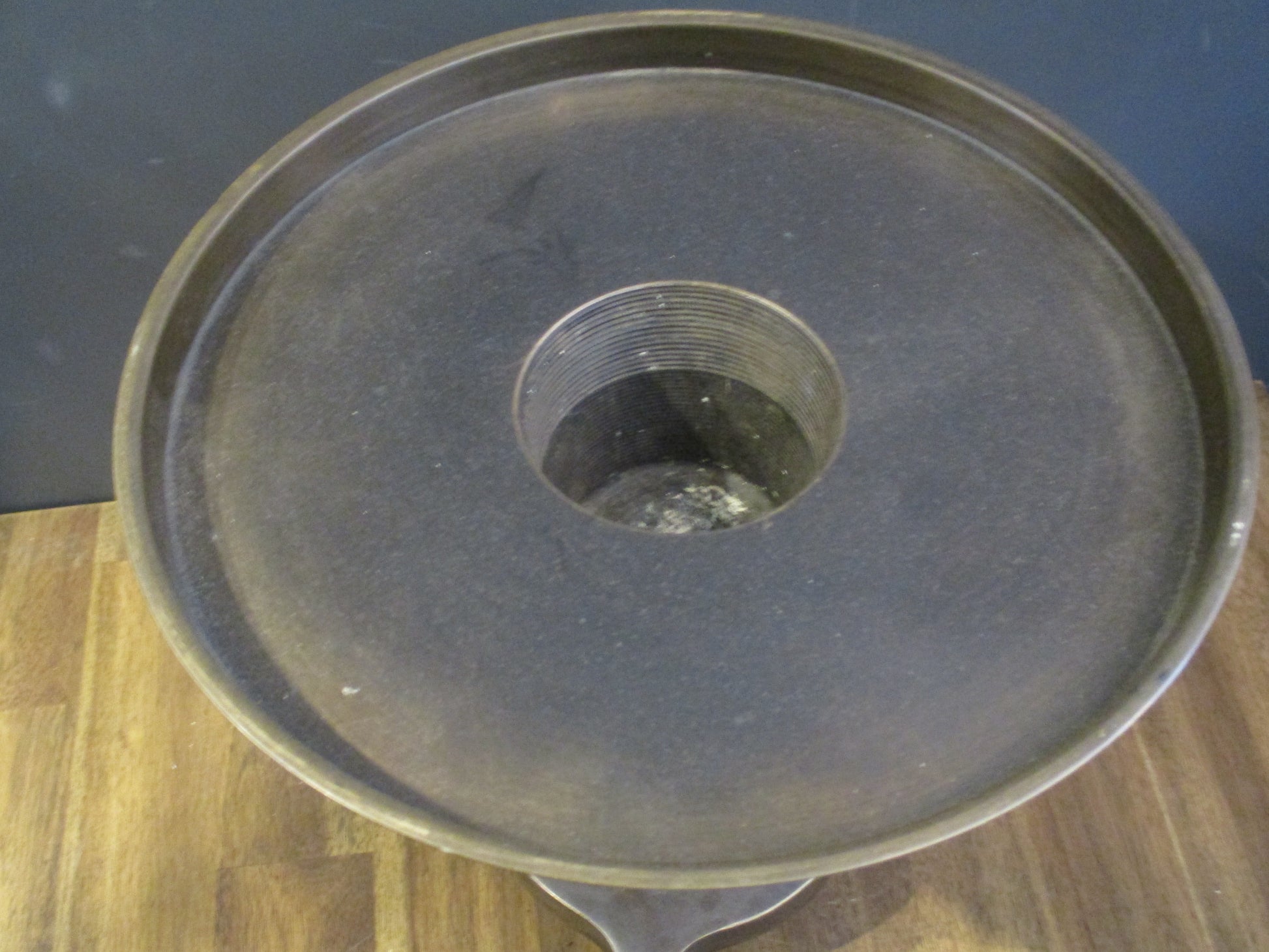 Bronze Ikebana vase and tray with Village, Waterfall and Mountain scene and Elephant head shaped handles.