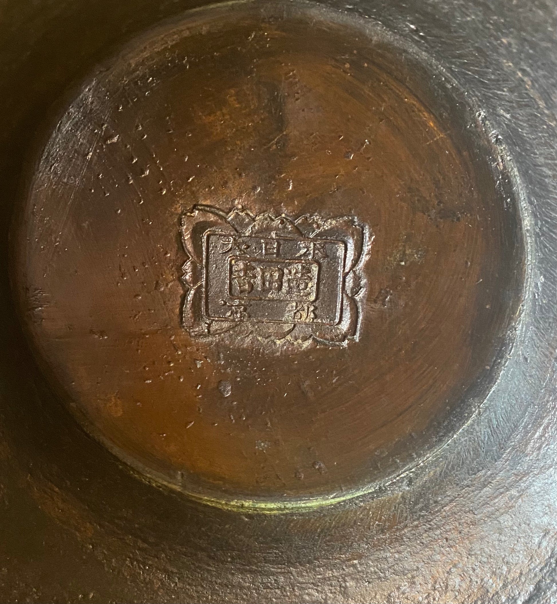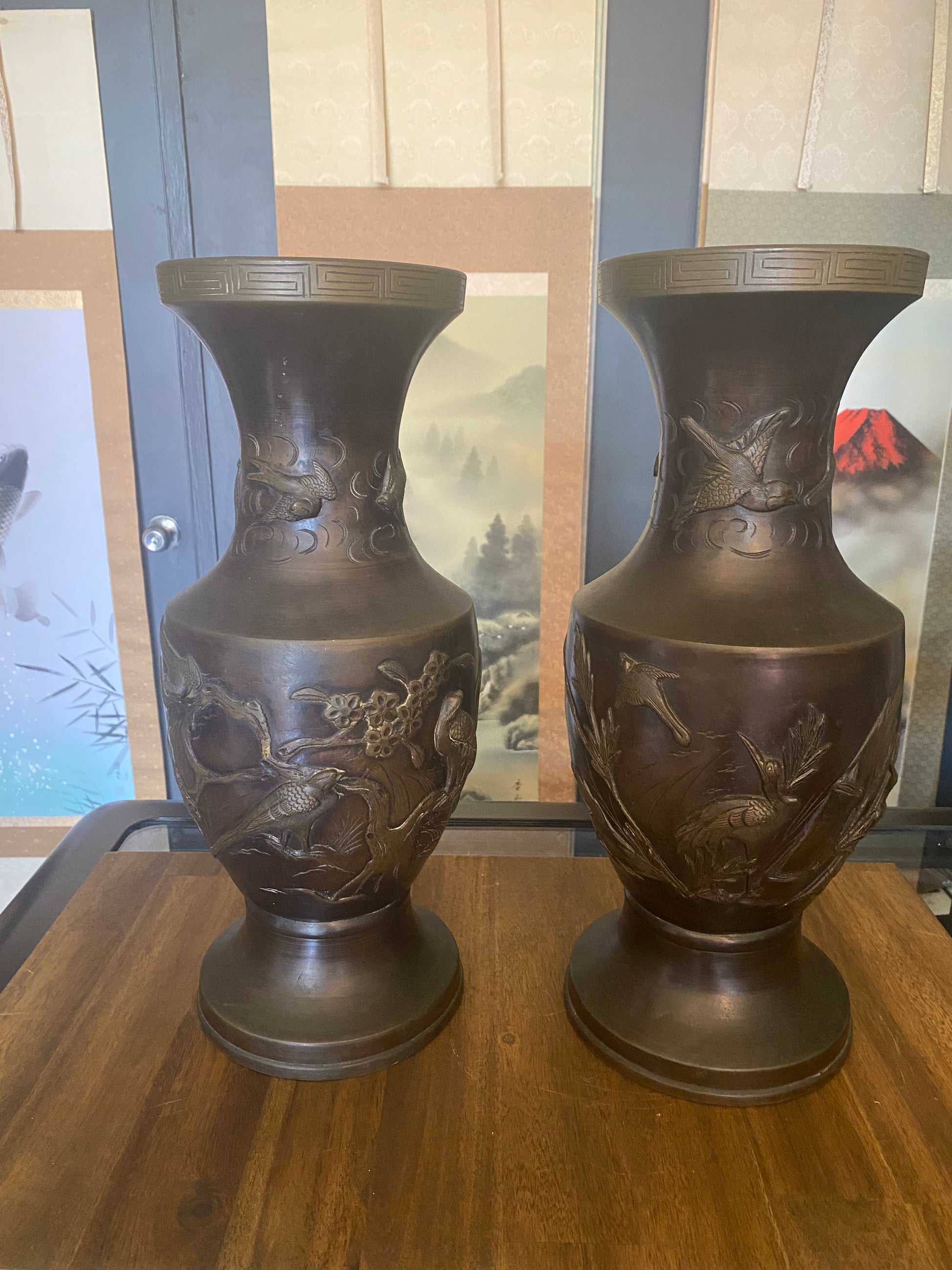 Japanese bronze pair of vases with relief decorations from meiji period. Signed Dai Nippon Yoshida Zo Kyoto circa 1890