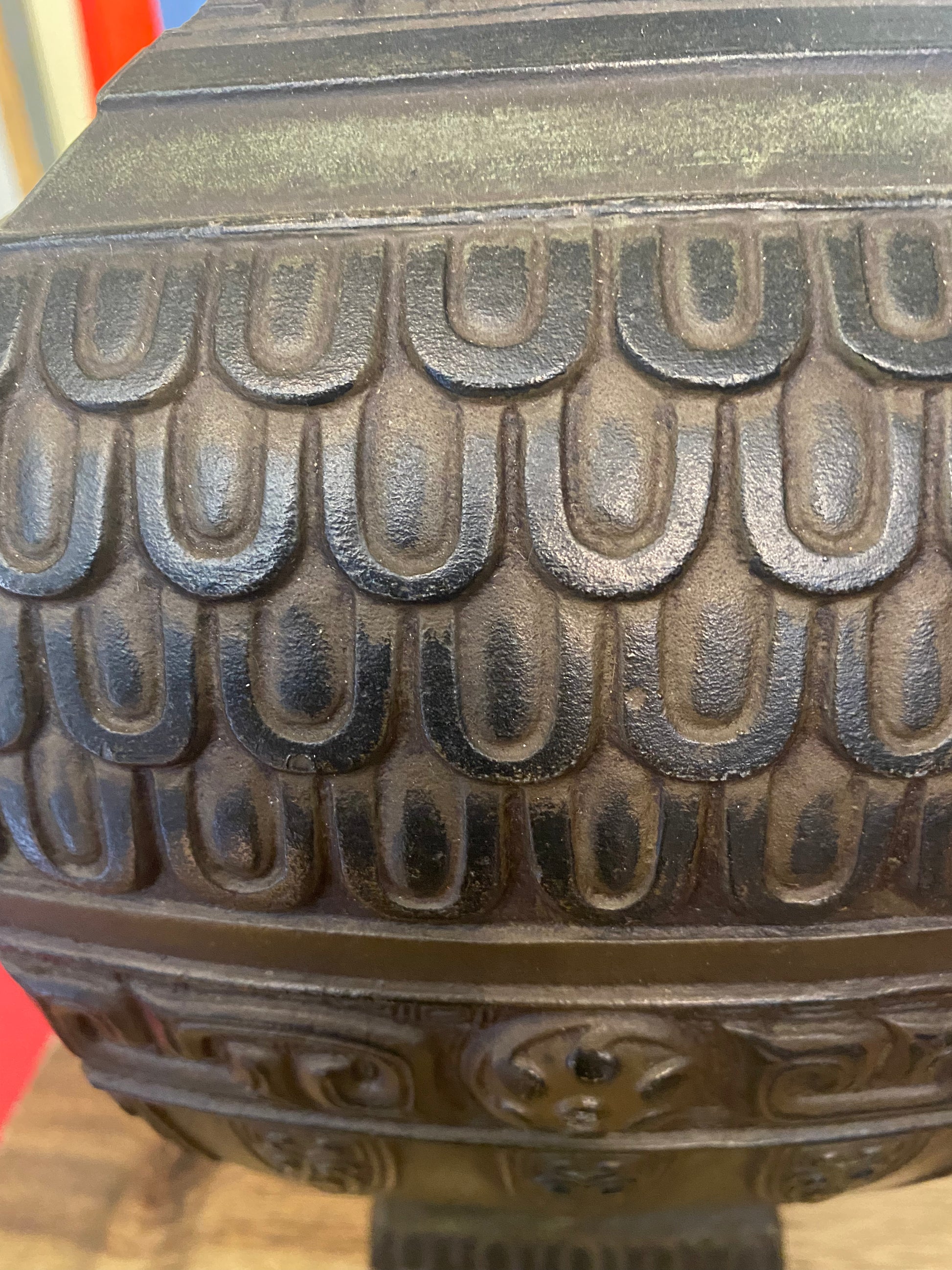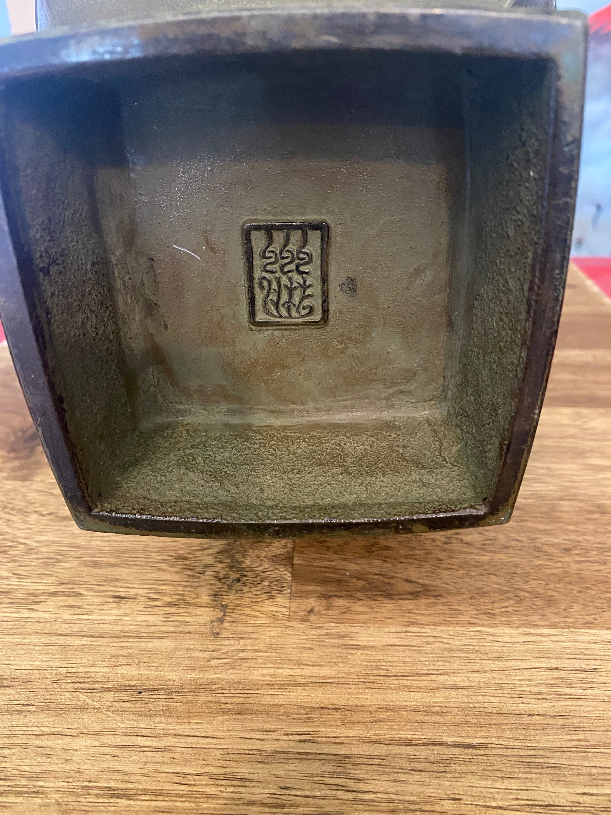 Japanese bronze vase, four sides with elaborate decorations from early Showa period. Signed Hoshu Shibuya circa 1930s