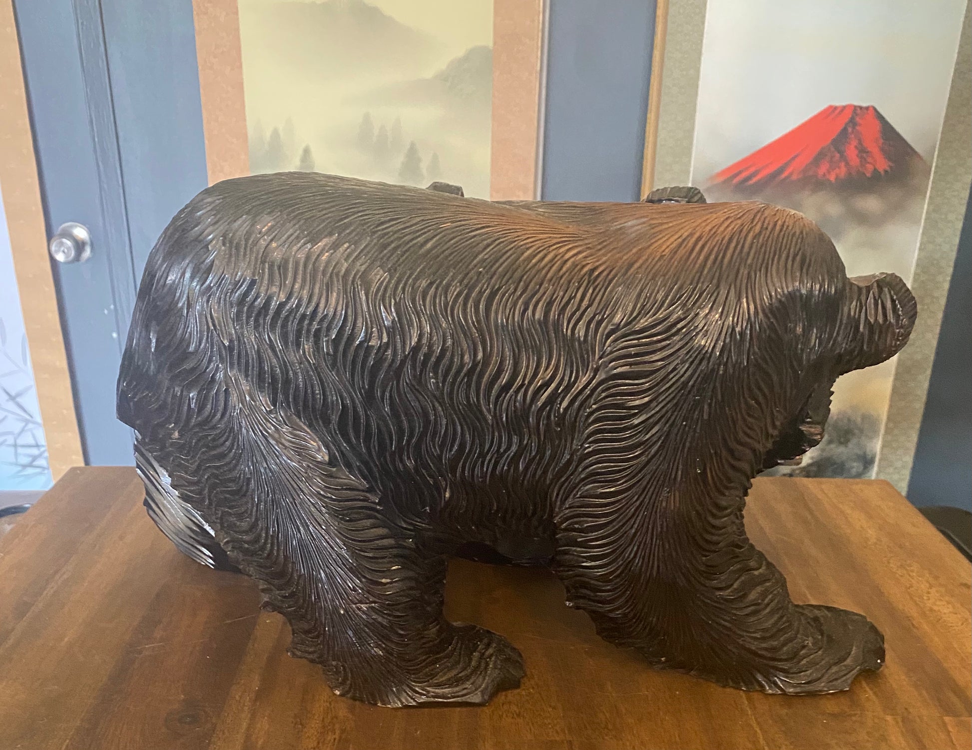 Japanese carved wooden bear holding a fish from Hokkaido. Circa 2000