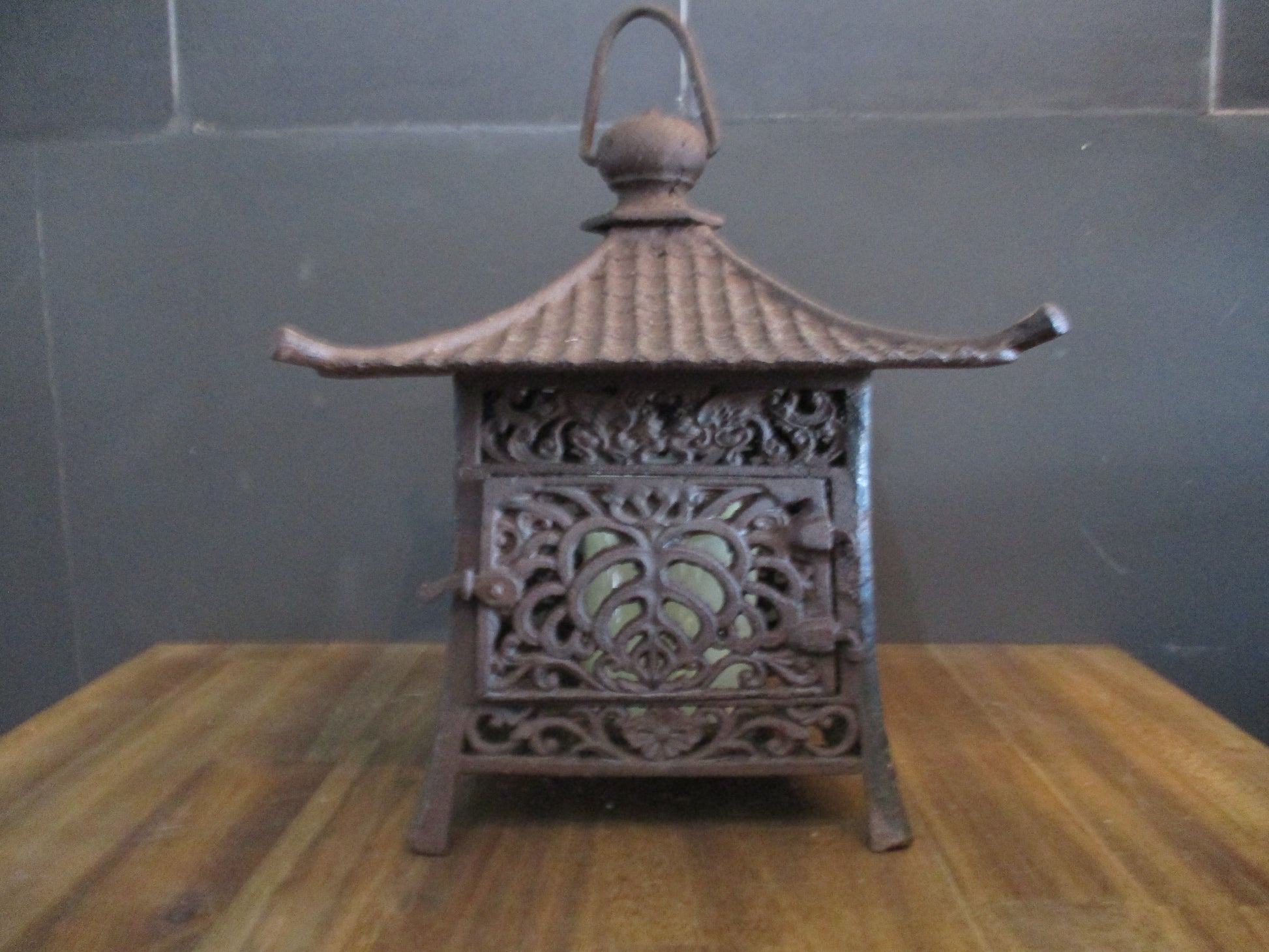 Japanese Cast Iron Lantern with floral decorations from early Showa Period.