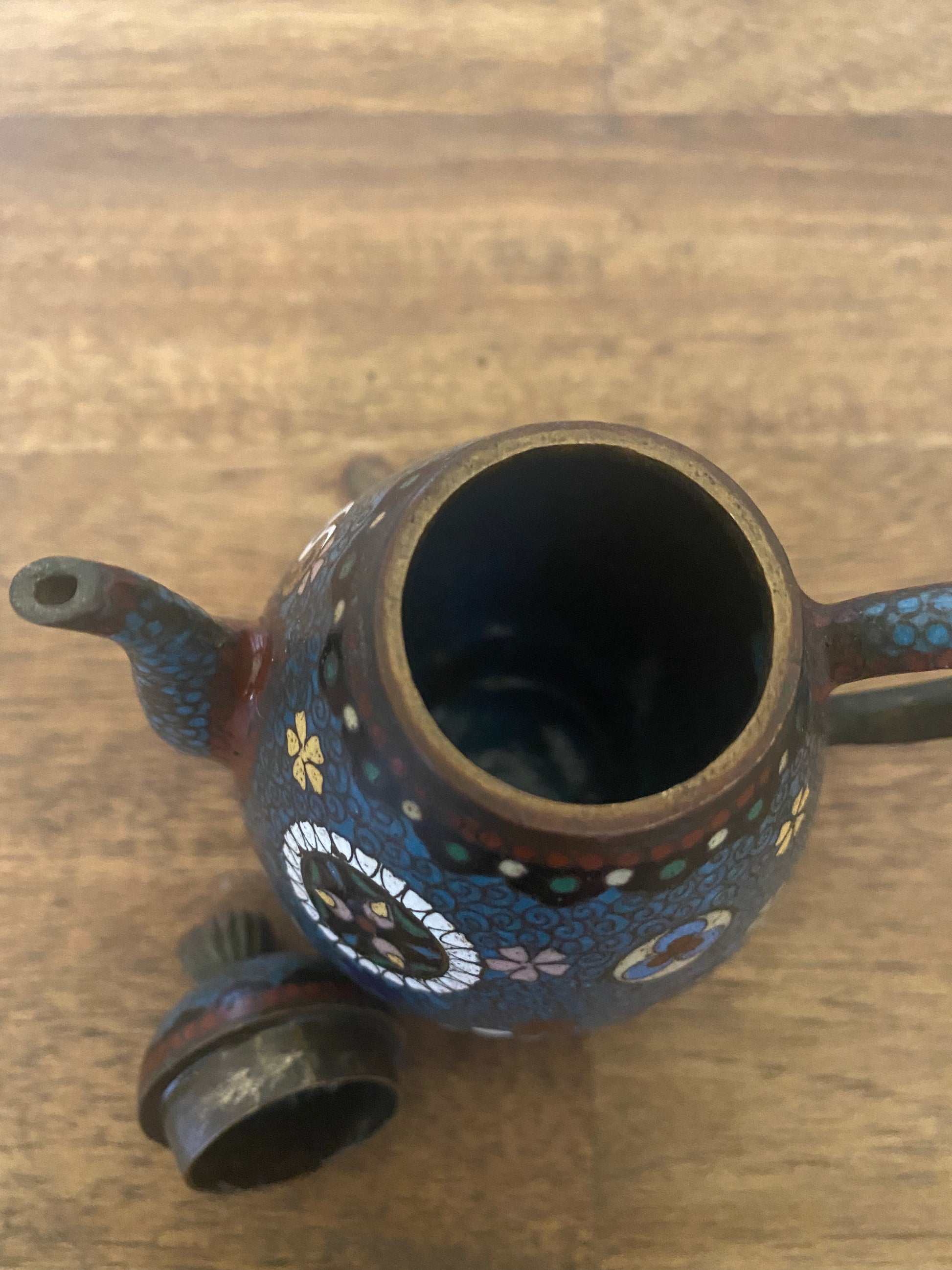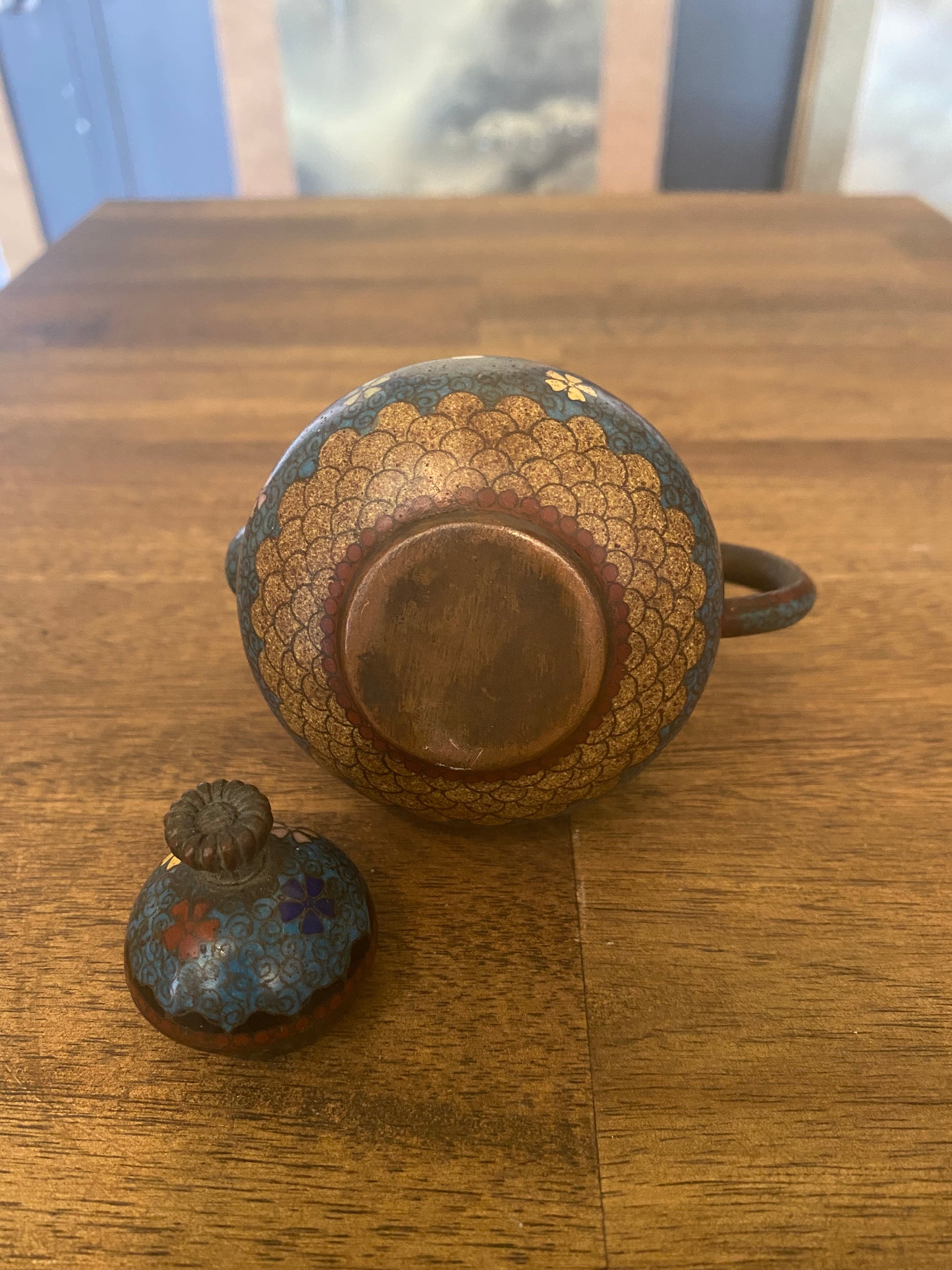 Japanese Cloisonne teapot with elaborate decorations from Meiji period. Circa 1890.