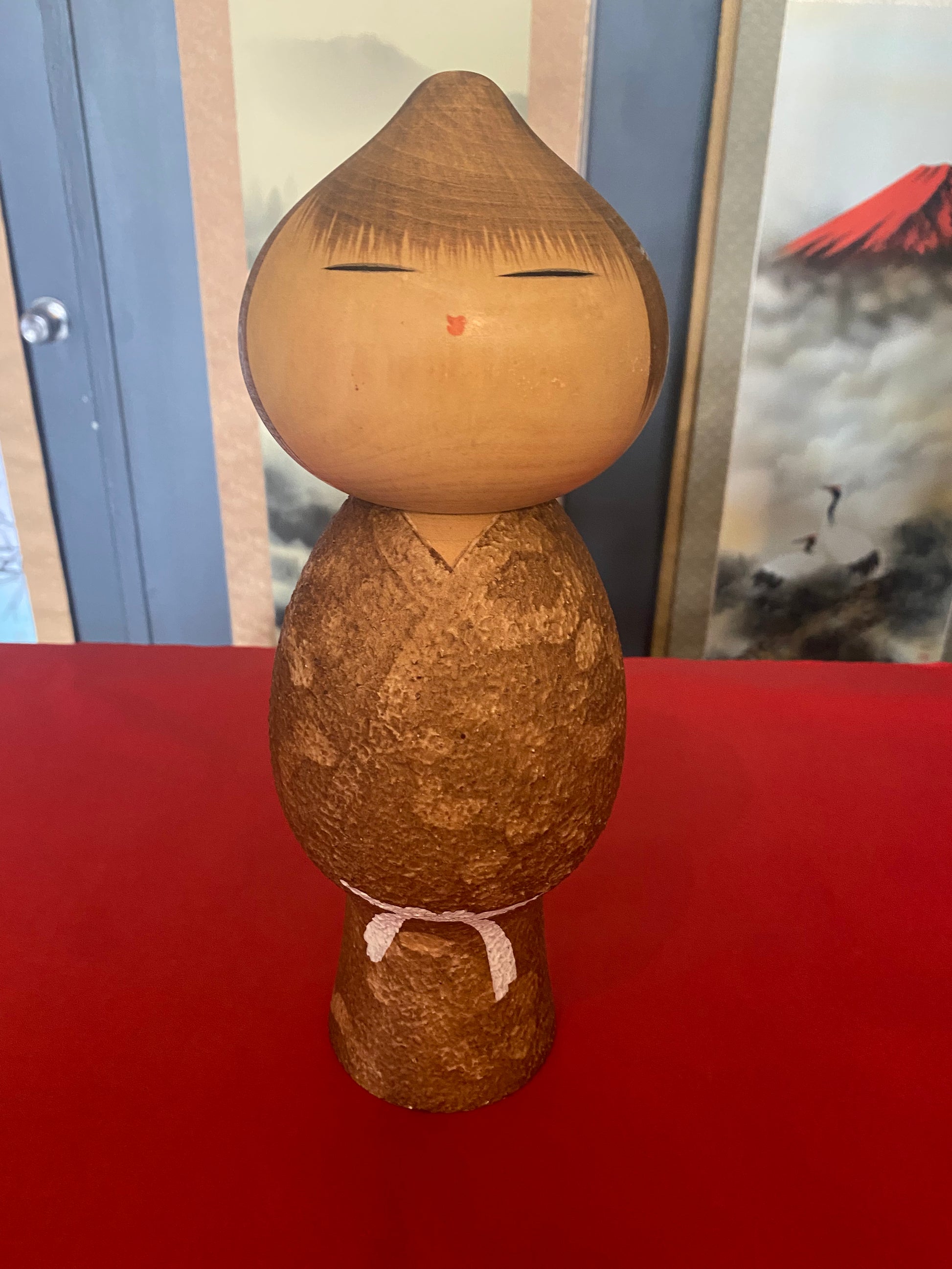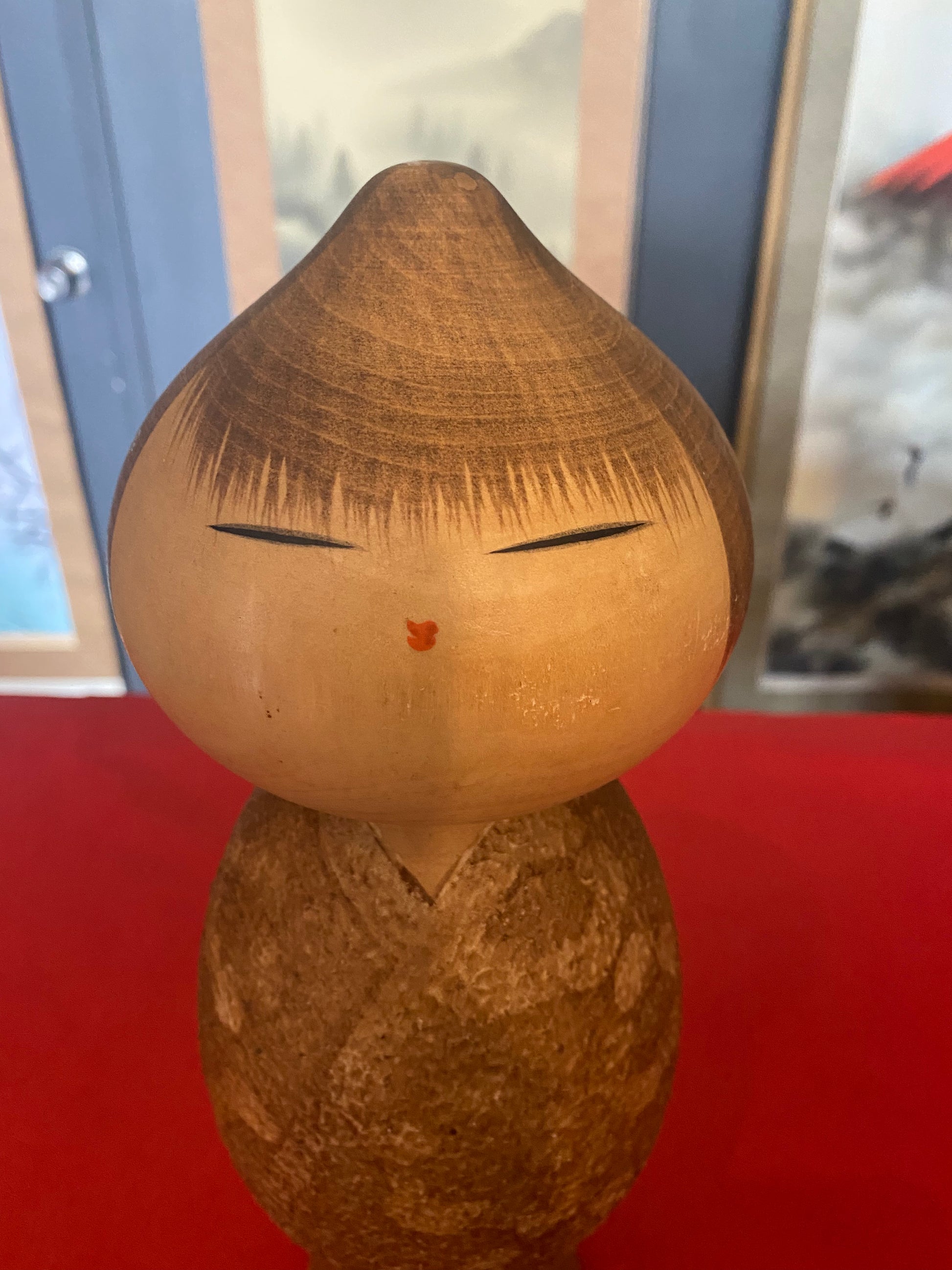 Japanese creative Kokeshi doll, young man by Watanabe Masao. Signed circa 1980.