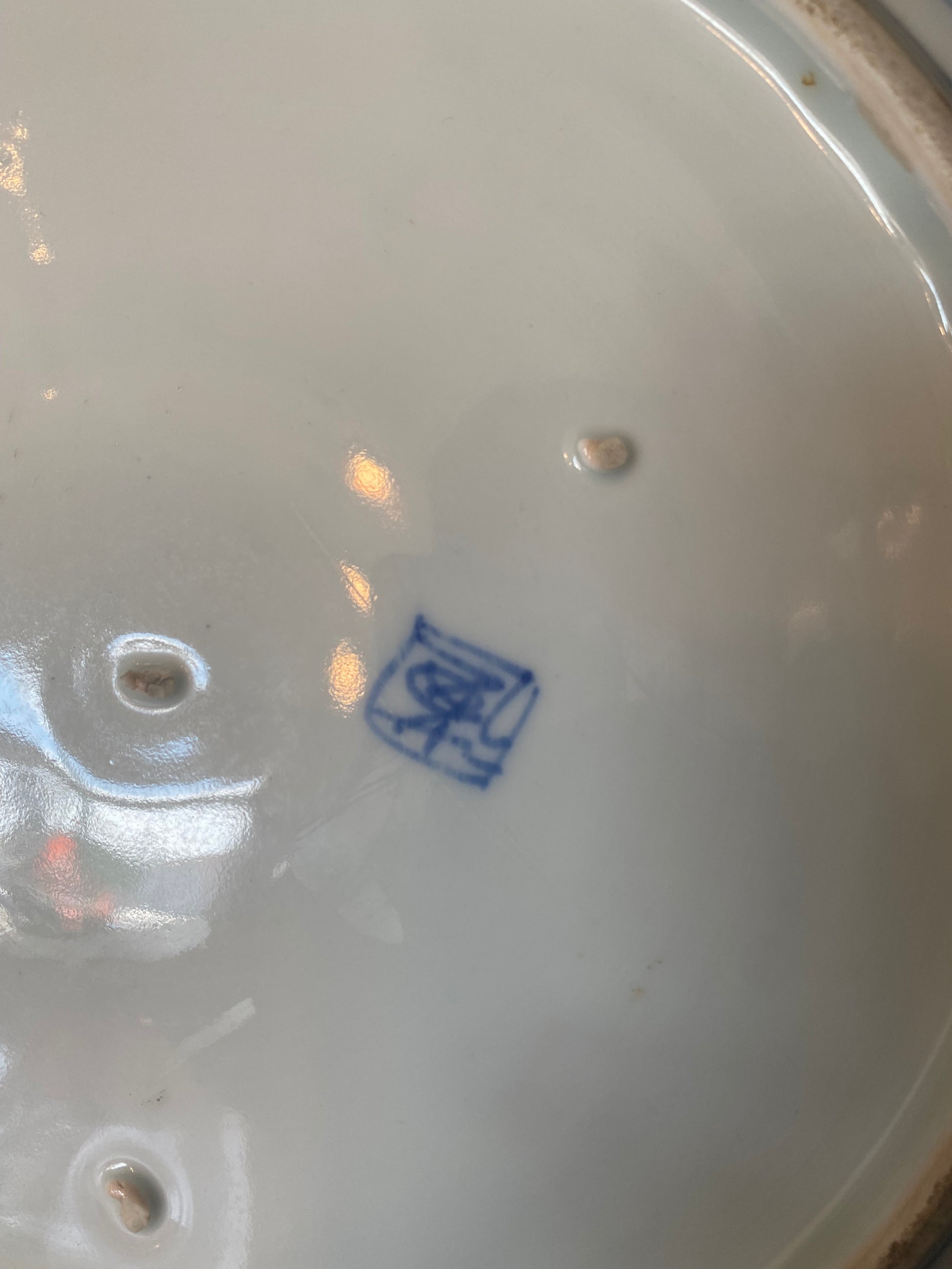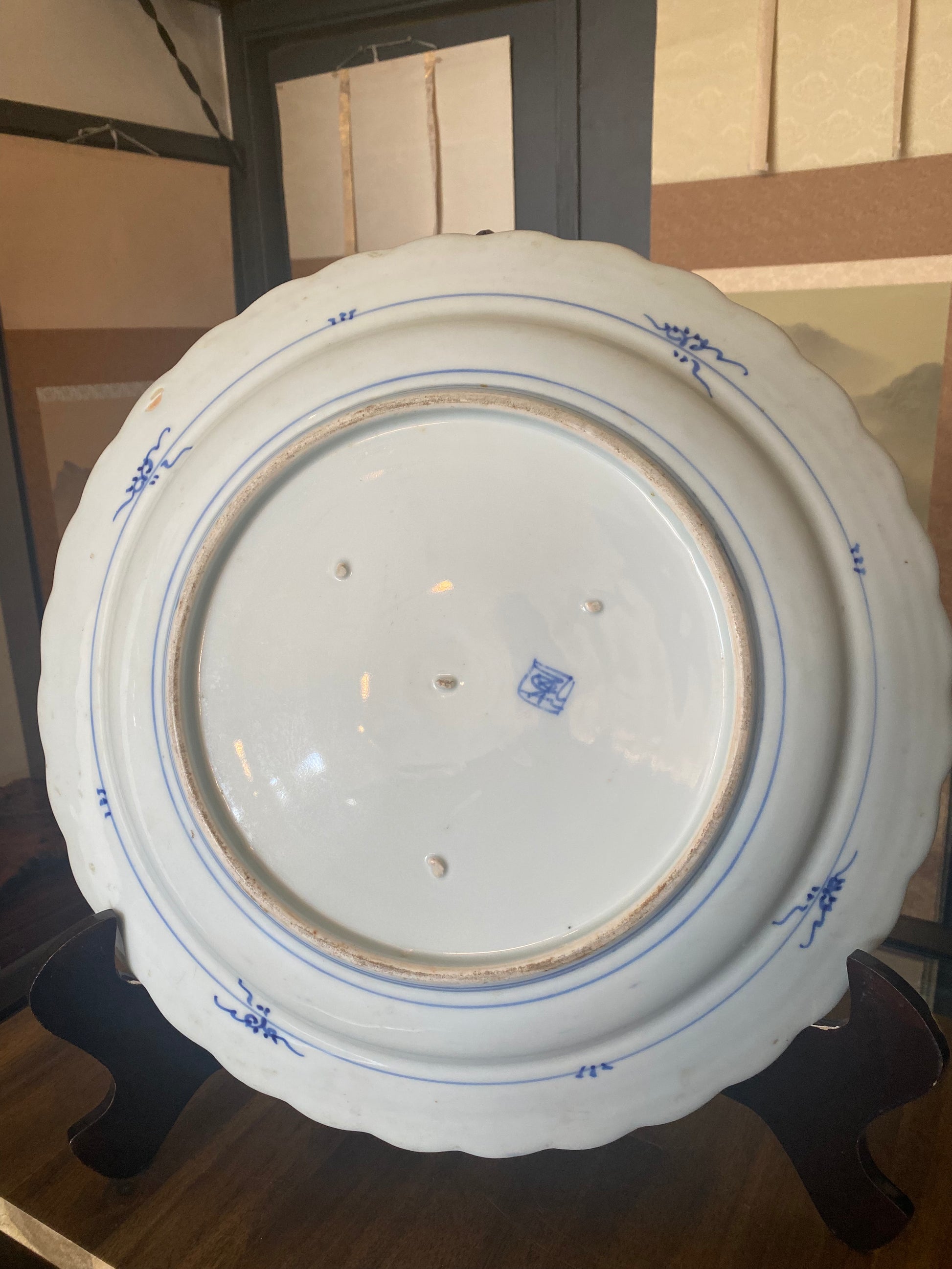 Japanese Imari blue and white charger depicting elaborate scenes. Signed circa 1930s.