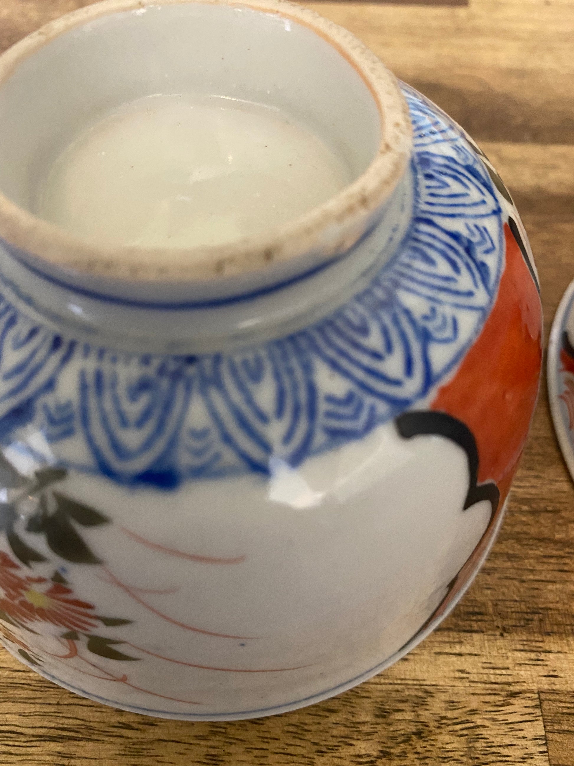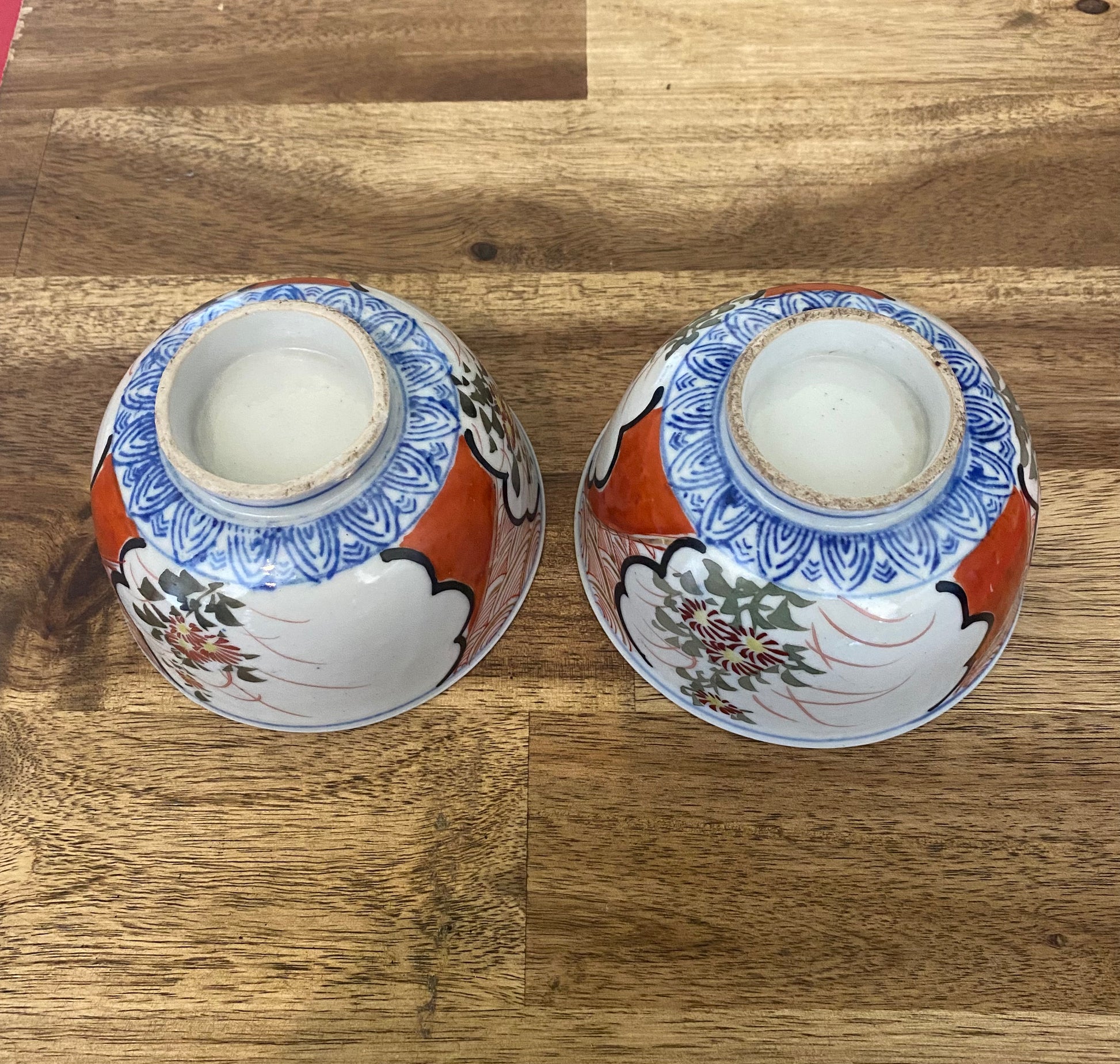 Japanese Imari cups (2) with flower decorations from Taisho period circa 1920s.