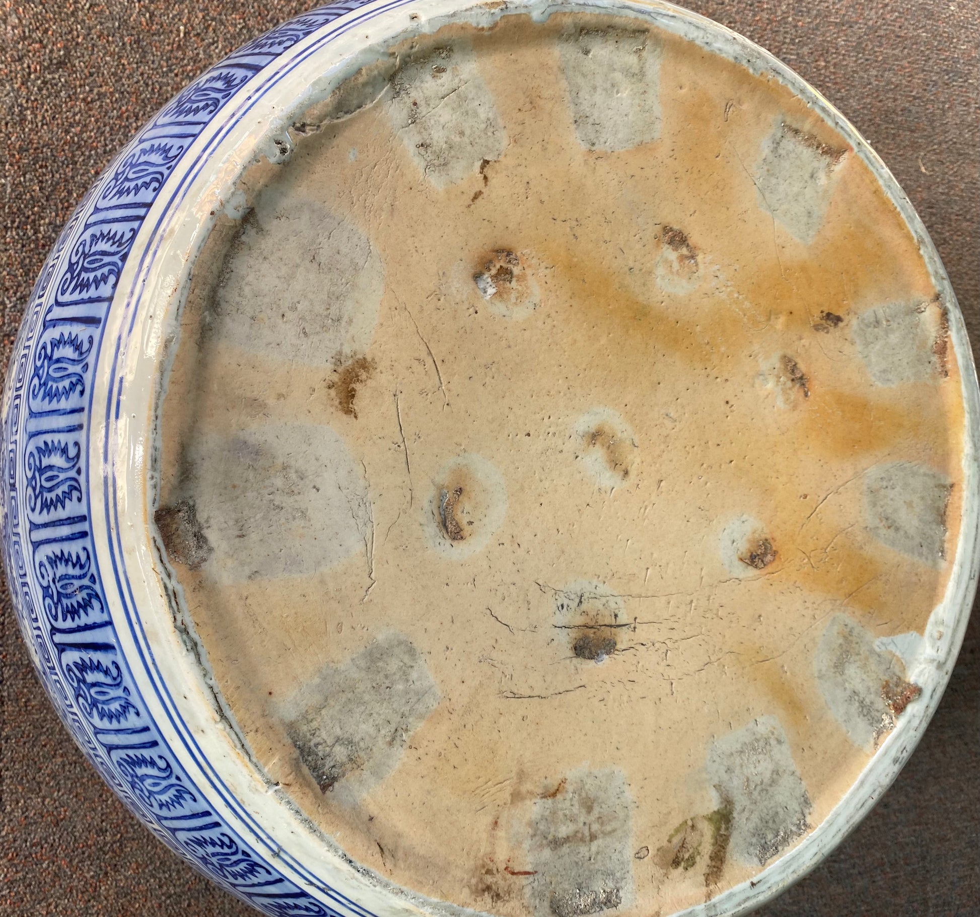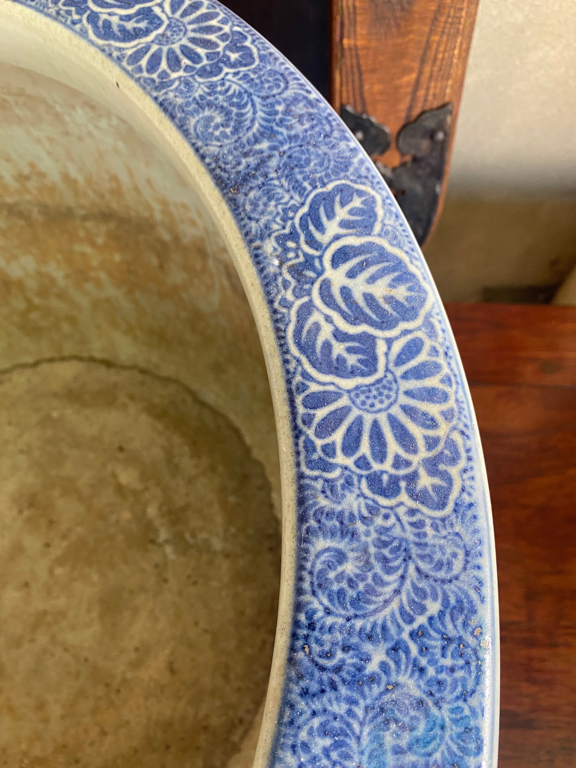 Outstanding Japanese Hibachi Imari Arita blue and white with elaborate decorations from early Showa period circa 1930s