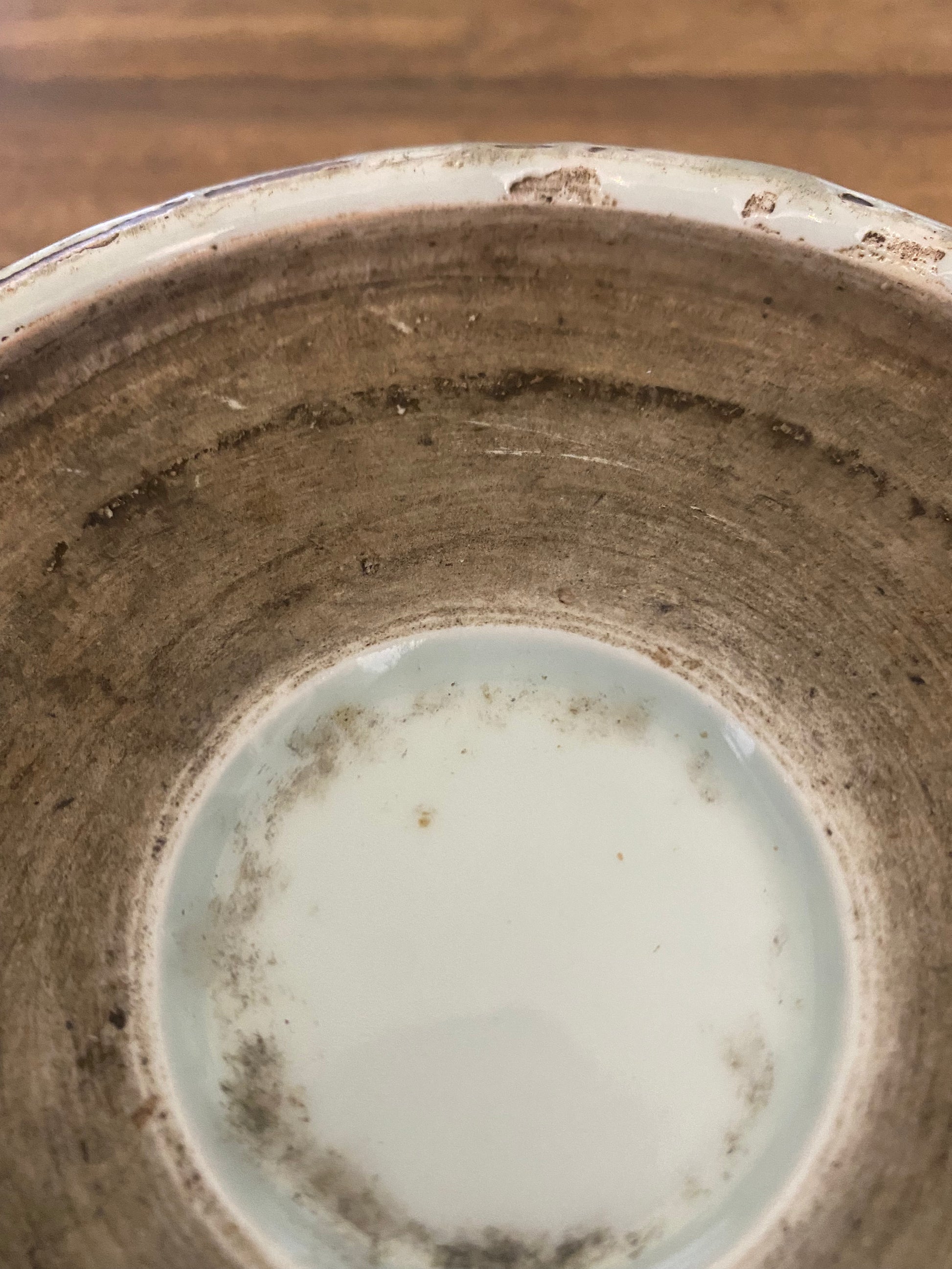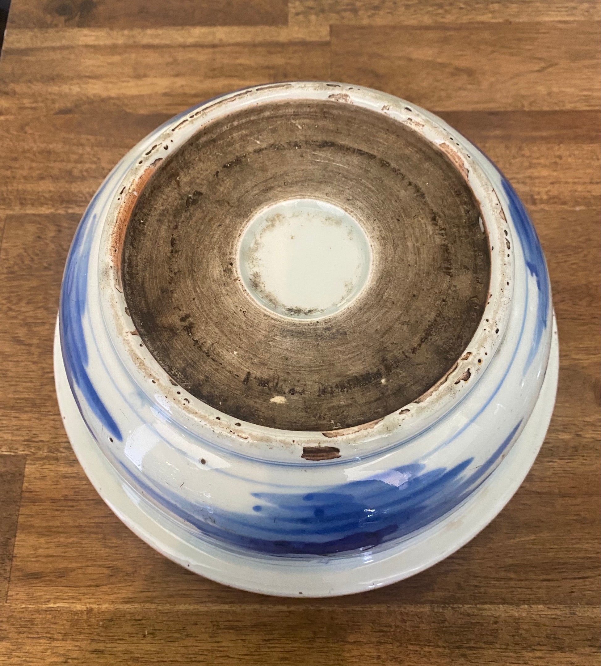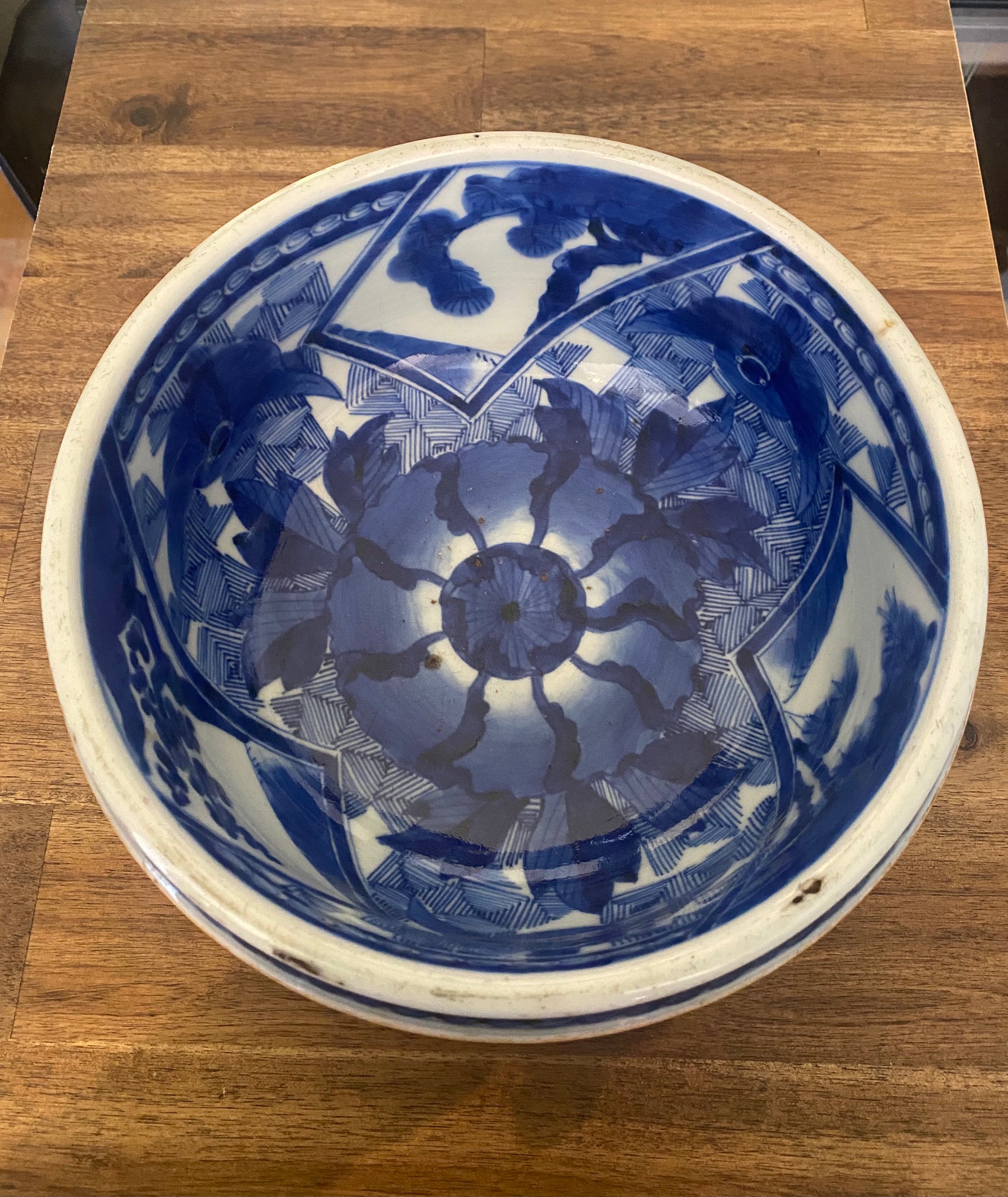 Japanese Ko-Imari blue and white bowl with tree and leaf decoration from Edo period. Circa 1820.