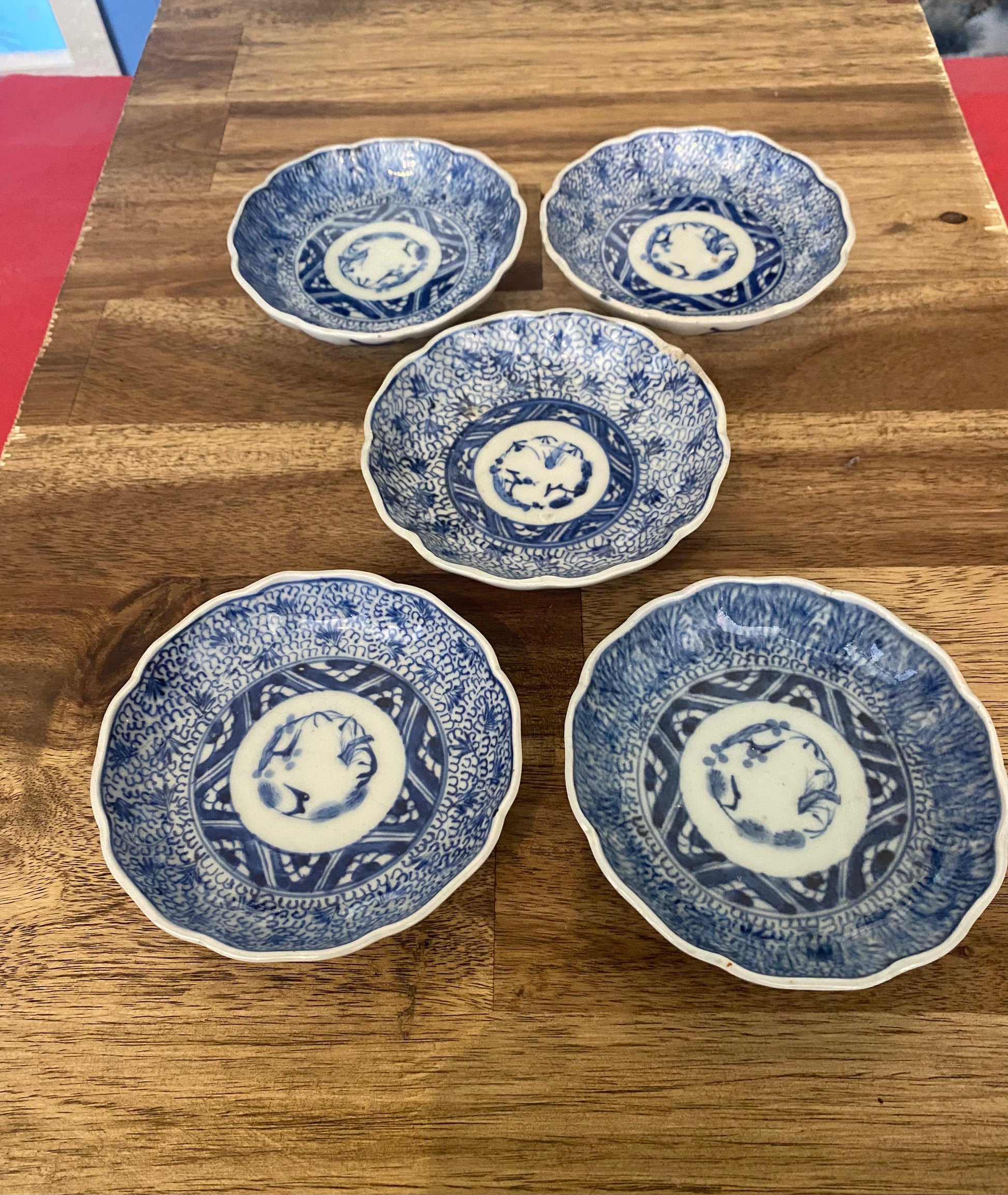 Japanese Ko-Imari small plate set (5) from late Edo period. Signed circa 1860s