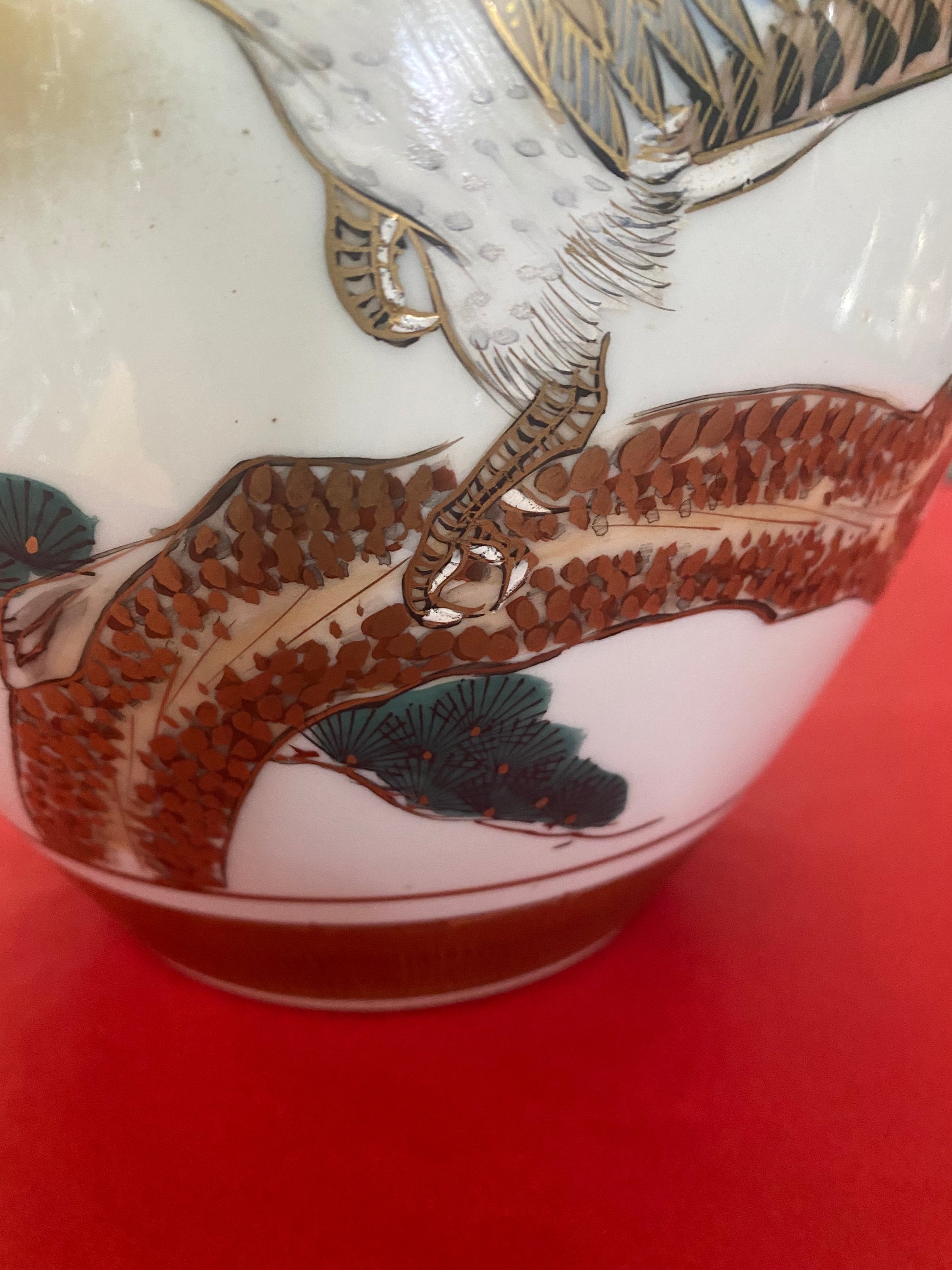 Japanese Kutani vase depicting hawk and pine tree from mid Showa period. Signed circa 1960s.