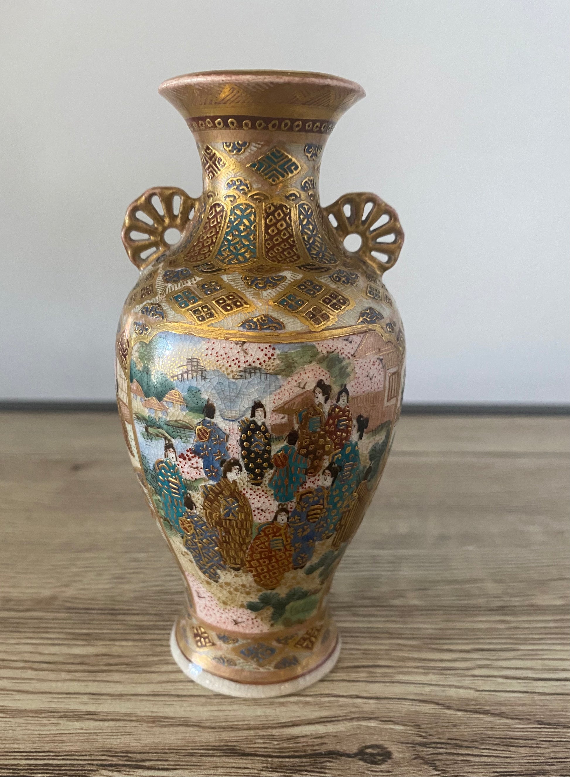 Outstanding Japanese Satsuma vase depicting elaborate scenes from late Meiji Period. Signed circa 1900.