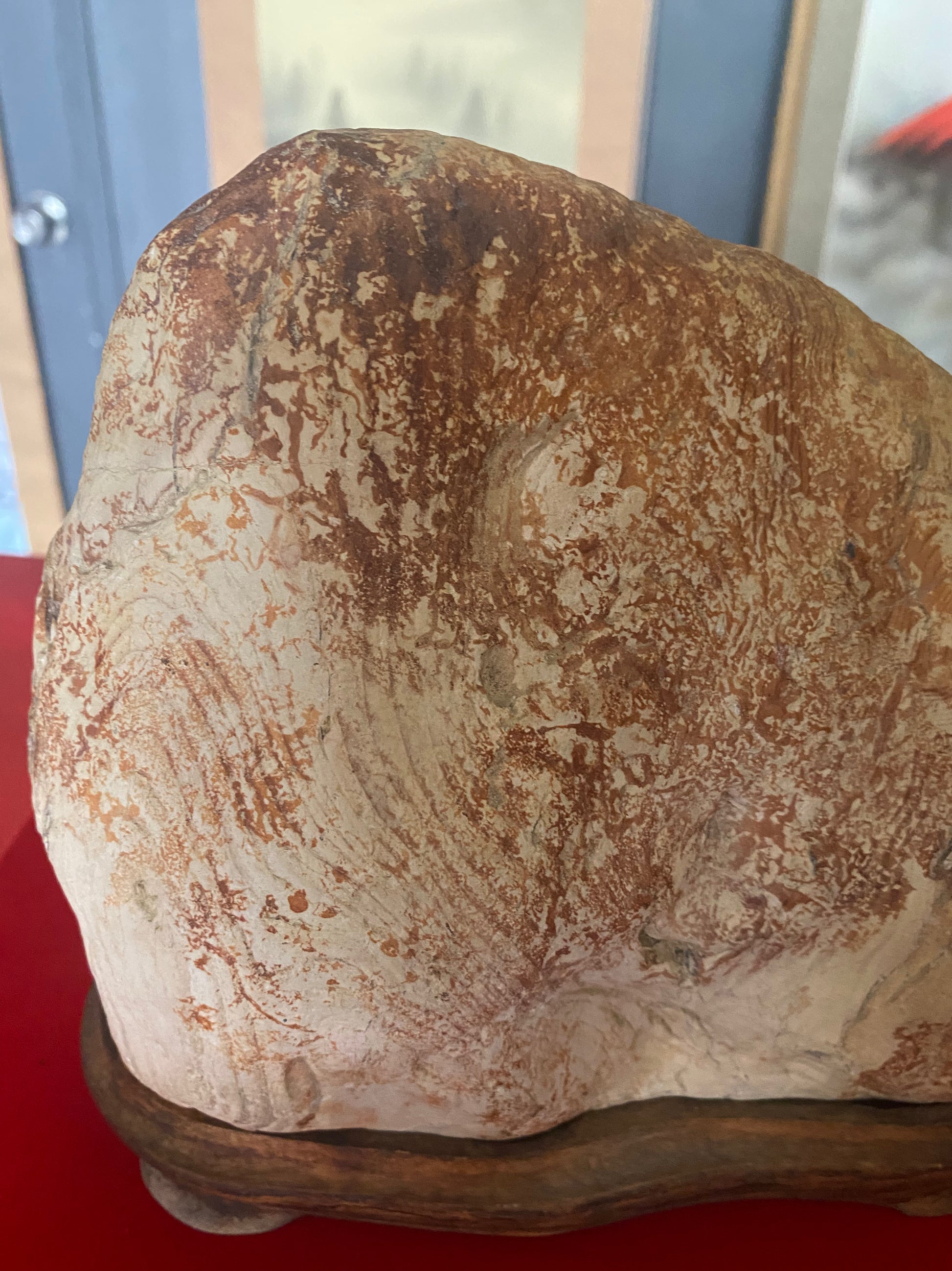 Japanese Suiseki stone, scholar viewing stone, fossilised wood with original wooden base.