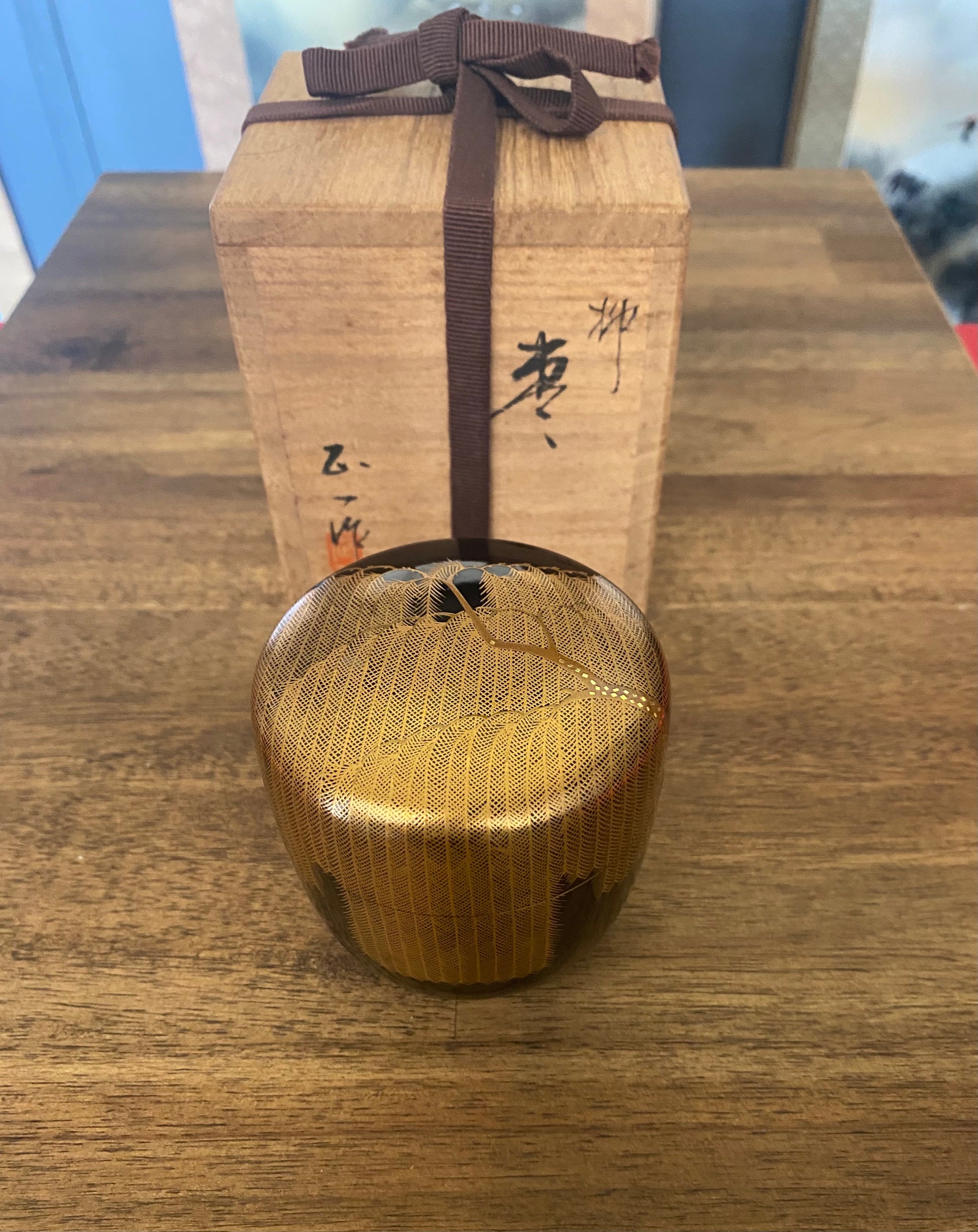 Japanese Traditional Wooden Lacquer Tea Caddy