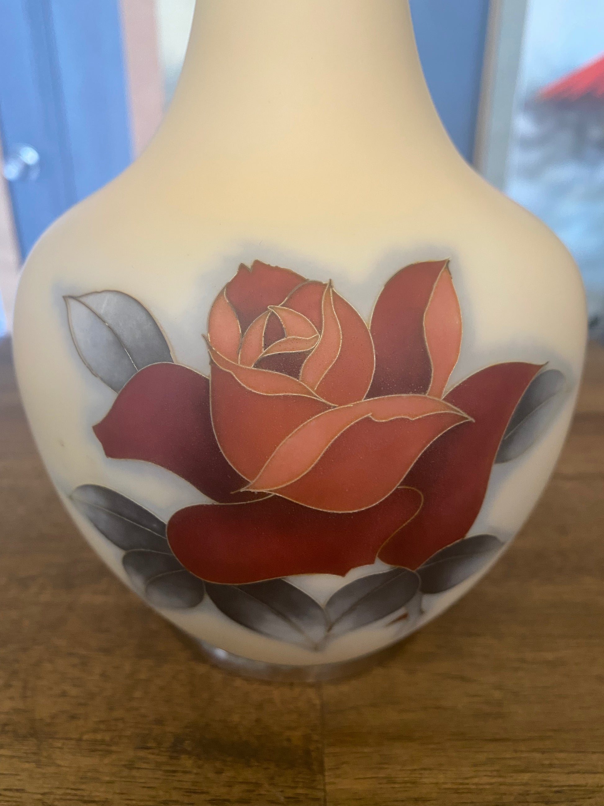 Outstanding rare matte finish Japanese Cloisonne vase with flower decoration from early Showa period. Signed Yoshihisa Hettori circa 1930s