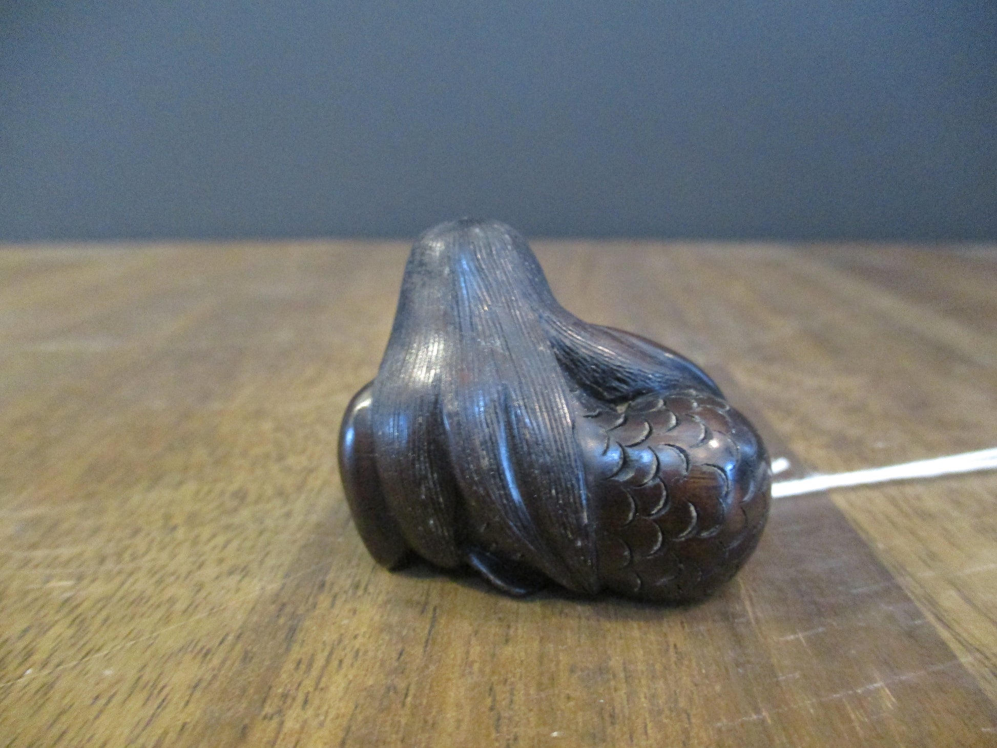 Japanese wooden Netsuke of a seated Mermaid from Taisho Period.